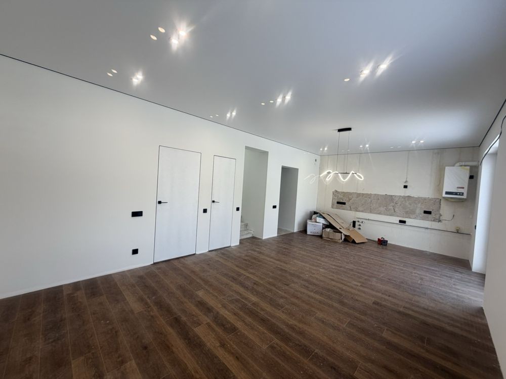 В таунхаусі виконаний новий та сучасний ремонт. Укомплектований меблями та технікою: кухонний гарнітур, газова варильна поверхня, духова шафа, холодильник, витяжка, посудомийна машина, пральна машина, шафи. Є підігрів підлоги.
