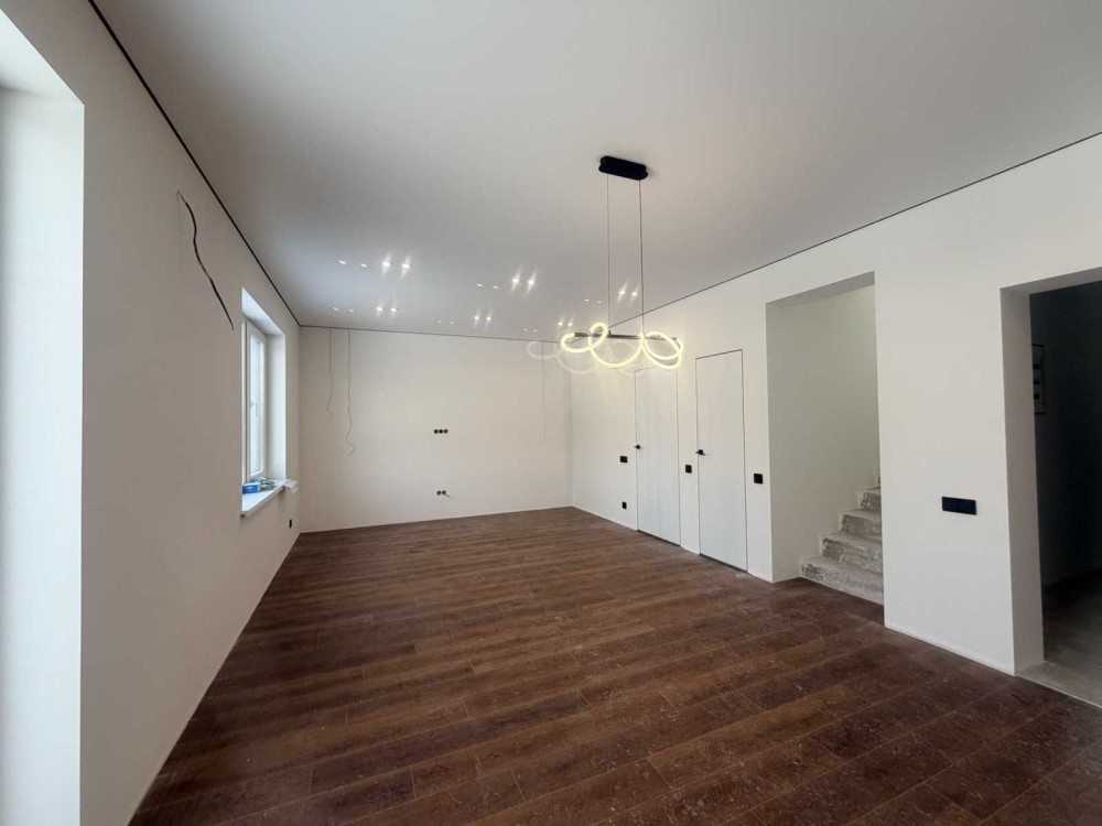 В таунхаусі виконаний новий та сучасний ремонт. Укомплектований меблями та технікою: кухонний гарнітур, газова варильна поверхня, духова шафа, холодильник, витяжка, посудомийна машина, пральна машина, шафи. Є підігрів підлоги.