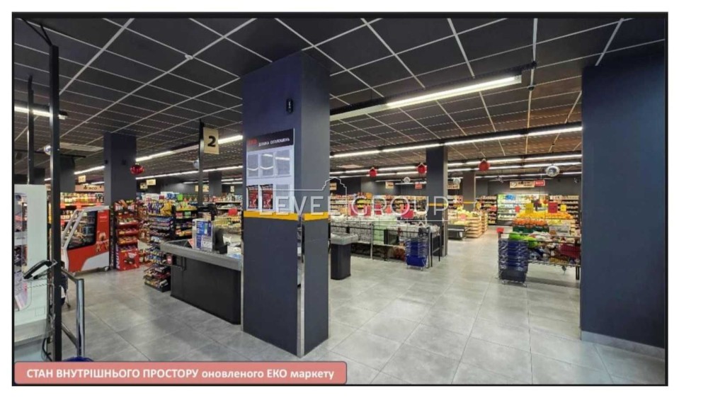 Прибудова до якоря: Будівля прибудована до вже оновленого та функціонуючого супермаркету мережі «Еко Маркет», що гарантує постійний потік цільових відвідувачів.