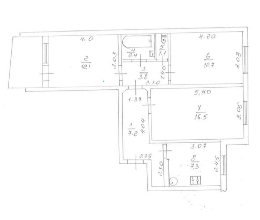 - три окремі кімнати ( 12,7 кв.м, 16,5 кв.м. і 12,8 кв.м.)