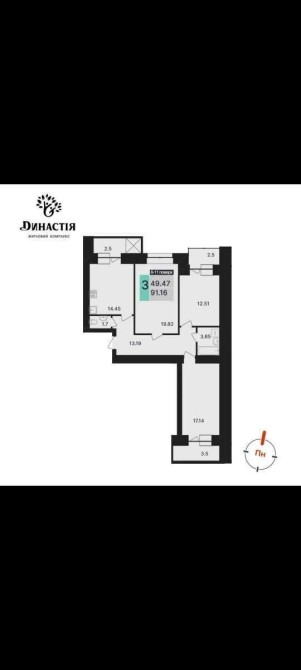 Трикімнатна квартира.