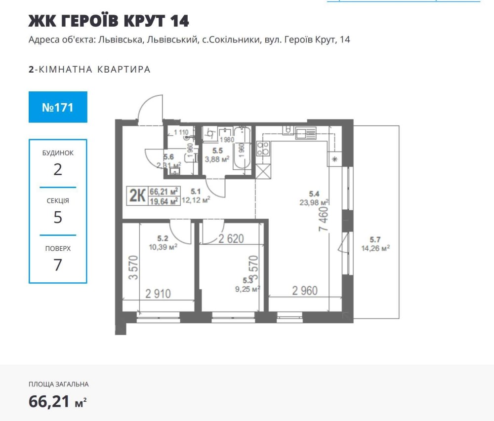 Площа: 66.21 м².