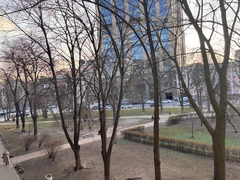 Вид з вікна у бік зеленого скверика.