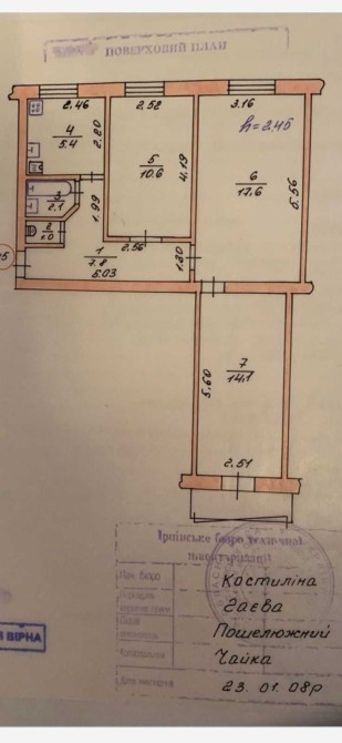 Квартира розташована в цегляному будинку, 3й поверх, посередині.