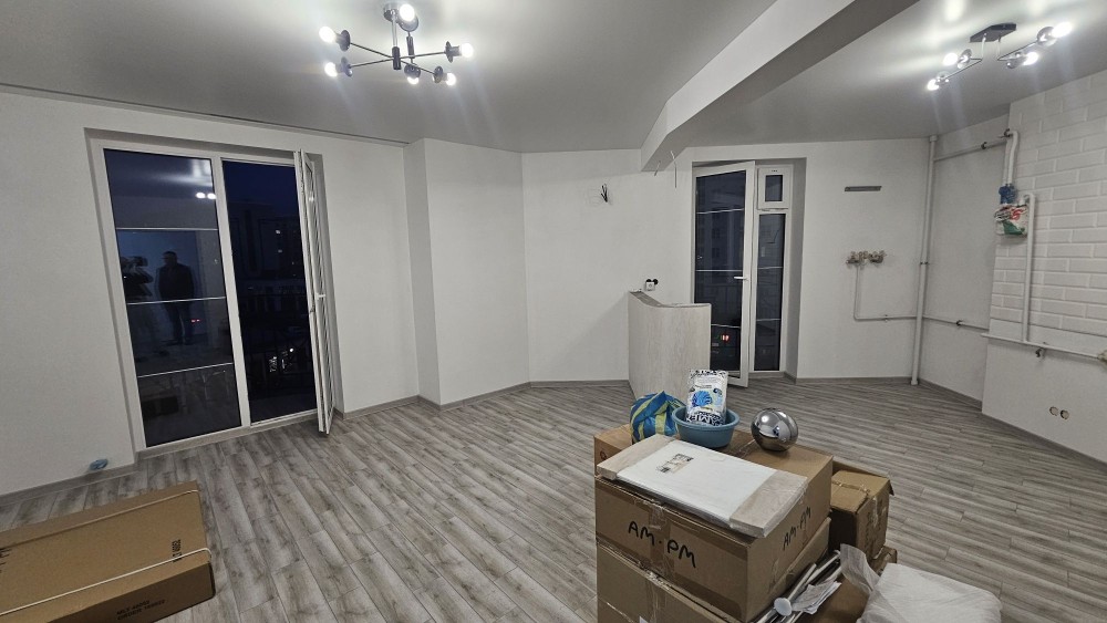 1,5 к. квартира велика, простора, прекрасне планування: велика кухня - вітальня з двома балконами та спальня, санвузол сумісний.