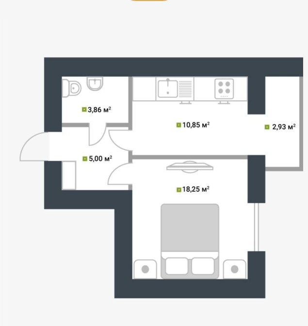 • Общая площадь 44 м2