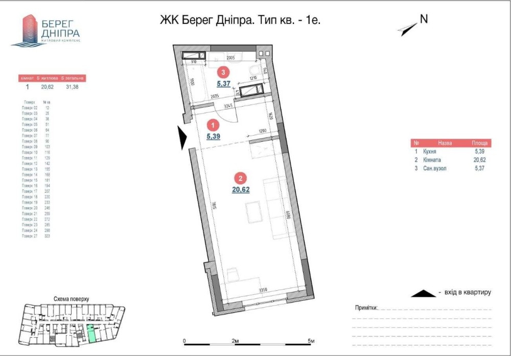 Пропонується до продажу класна видова квартира-студія в якісному ЖК Берег Дніпра