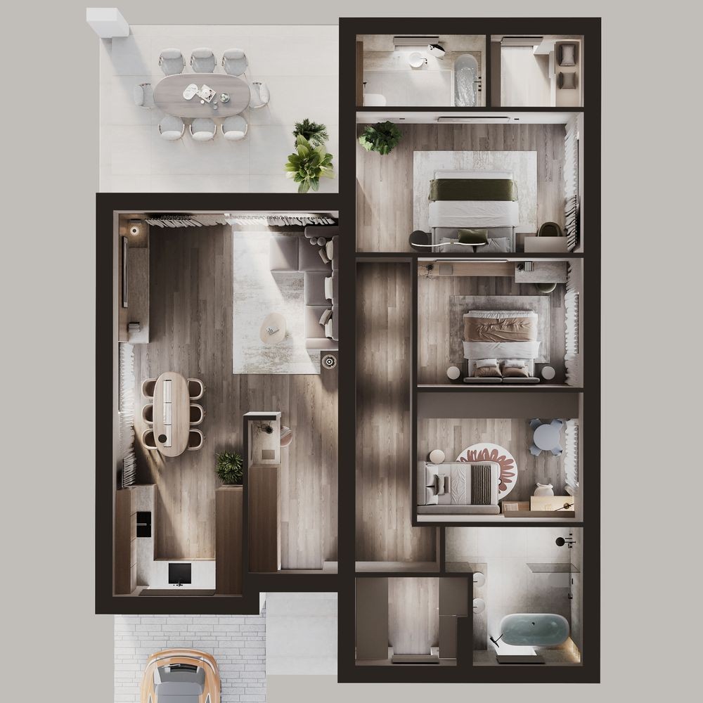 • 3 спальні кімнати, включаючи майстер-спальню з власним санвузлом і гардеробом