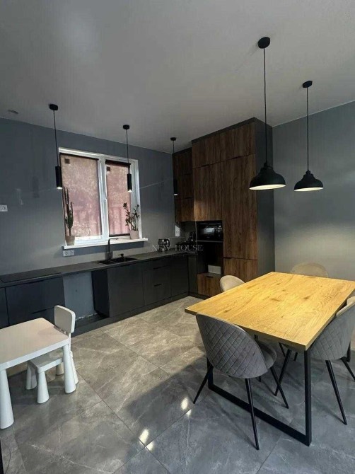 Всі меблі та техніка залишаються: вбудована кухня, холодильник, пральна машина з сушкою, телевізори, бойлер, котел.