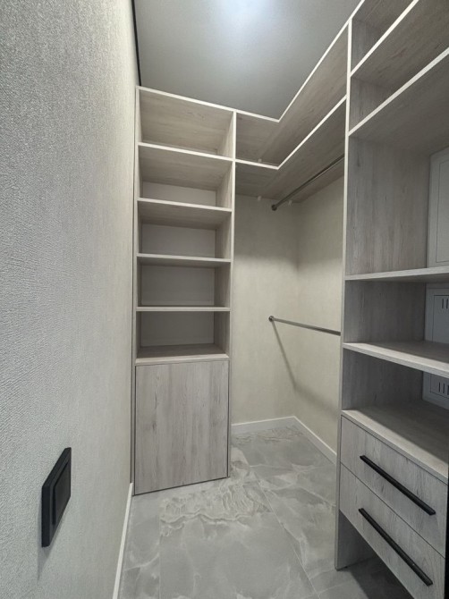 Простора гардеробна. Спальня дуже простора з додатковою шафою для зберігання речей. На балконі можна облаштувати робоче місце.