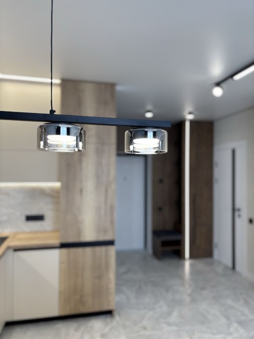 Сучасна вбудована кухня, з різним типом освітлення.