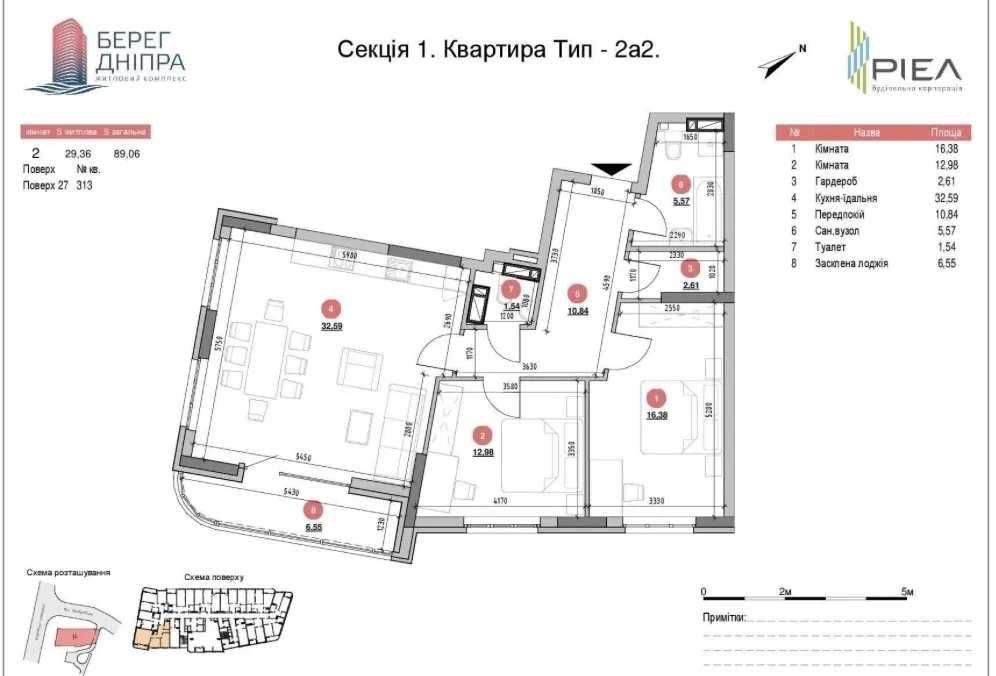 Продаж 2 кімнатної квартири 89 м2. Зручне планування - вітальня/кухня плюс дві окремих спальні кімнати, два санвузли. Сучасний комплес розташований на березі Дніпра. У вас завжди є куди припаркувати свій автомобіль завдяки зручному підземному паркінгу. Дітям та дорослим доступні спортивний та дитячій майданчики.