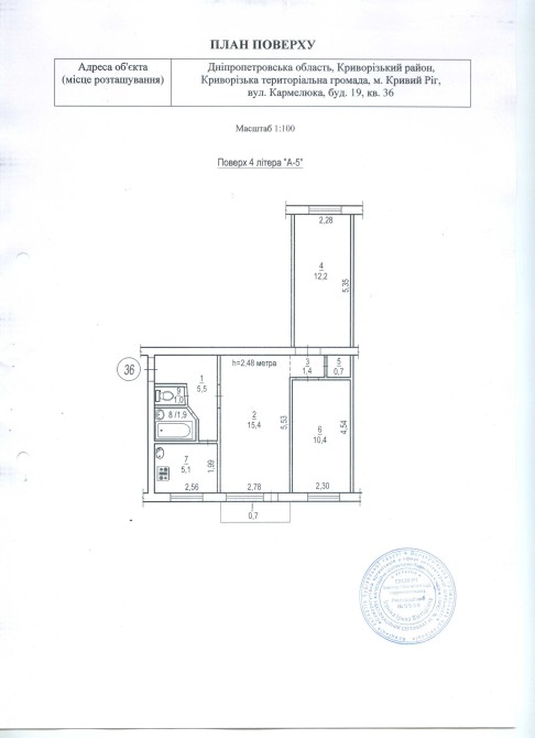 Продажа 3-ком. квартиры 54,3 кв.м. (общая площадь). Высота потолка 2,48м.