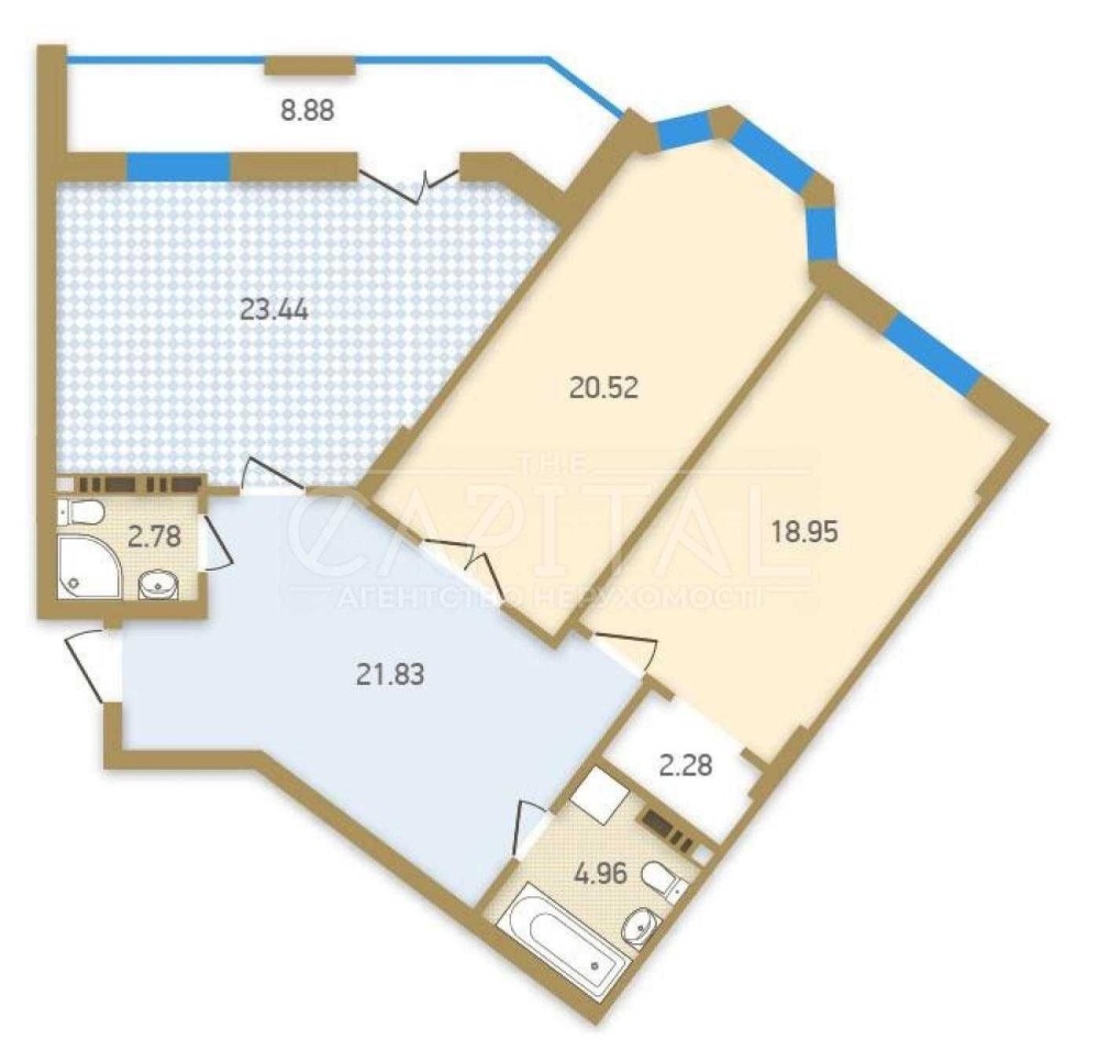Перша житлова кімната - 21 квадратний метр.