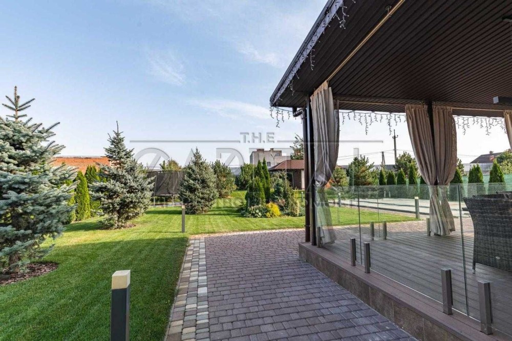 Будинок 254м2 стоїть на ділянці 12 соток, на задньому дворі красивий ландшафт, що включає в себе: