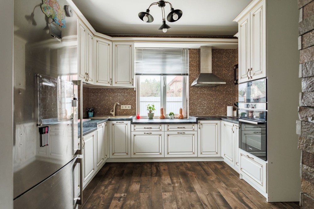 • Вбудована техніка BOSCH: посудомийна машина, духова шафа, варильна поверхня, мікрохвильова піч, холодильник;