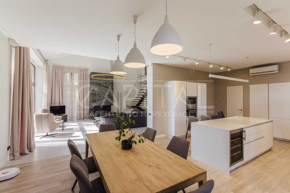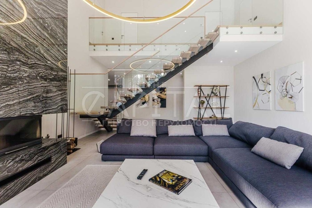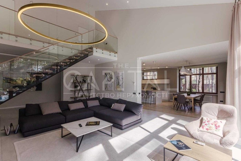 Будинок повністю мебльований. І готовий до проживання. По периметру – камери зовнішнього спостереження, сигналізація, тривож. кнопка, швидкісний інтернет. Престижний район, елітні сусіди! Тиша та свіже повітря. Будинок облаштований всією необхідною технікою: посудомийна машина, холодильник, варильна панель, духова шафа, пральна машина, кондиціонери тощо. На території -зроблений чудовий ландшафтний дизайн. Будинок виконаний з дизайну відомого архітектора. Інтер'єр будинку розроблений у світлих відтінках. Тут панує гармонія з природою та заспокійлива атмосфера від галасливого міста.