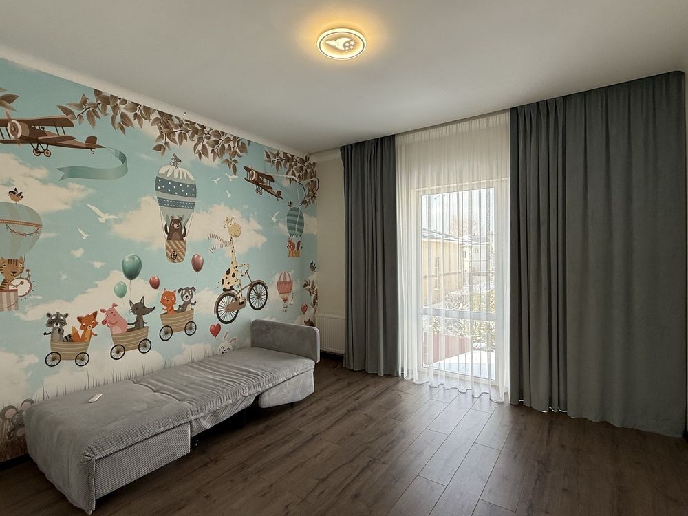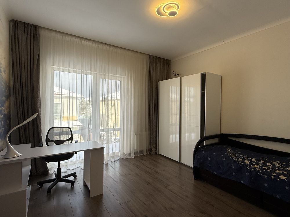 4 раздельные комнаты ( 2 детских спальни, родительская с гардеробной комнатой, кабинет )
