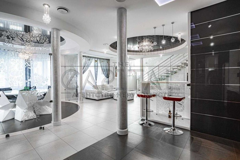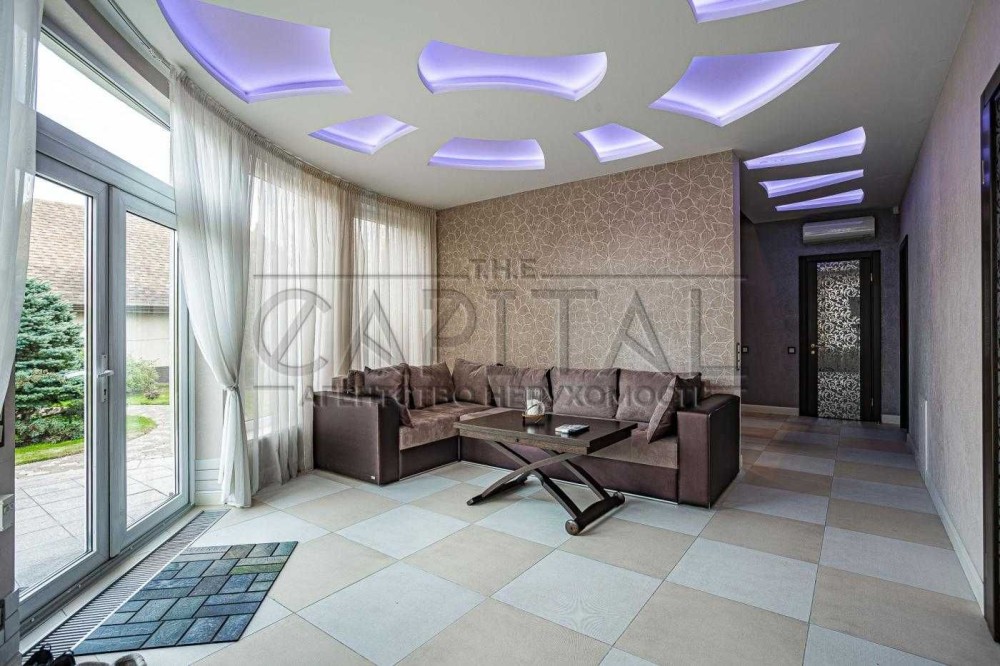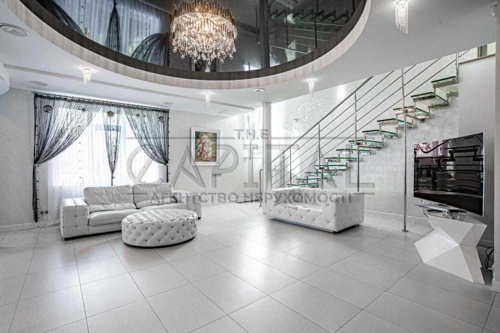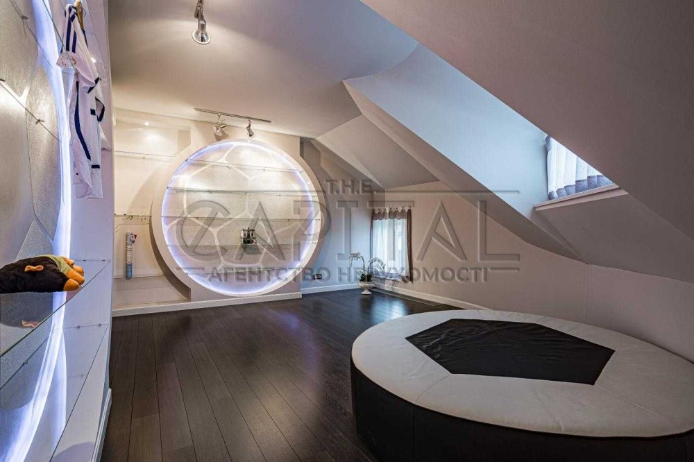 На території: Основний будинок з гаражом на 1 авто, навіс на 2 авто, Гостьовий будинок, флігель-літня кухня, басейн, вихід до заливу Дніпра, свій пірс з альтанкою, елінг та катер 7,5м на 10-12люд, пристосований для прогулянок та риболовлі