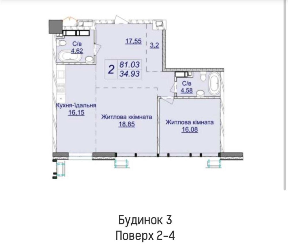 Загальна площа – 81 кв.м.