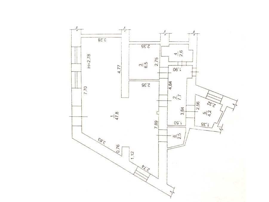 Высота потолка 2,78 м. П