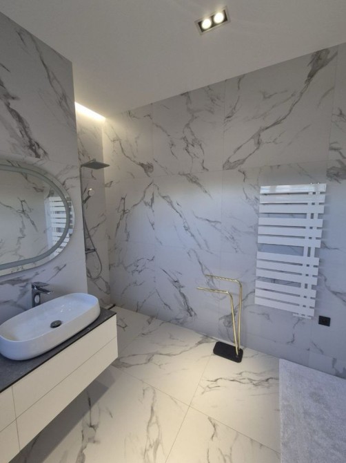 - Сантехника "OLYMPIA" (Италия), инсталляция фирмы ALCA PLAST (Чехия), дизайнерские полотенцесушители фирмы "Instal projekt"(Польша);