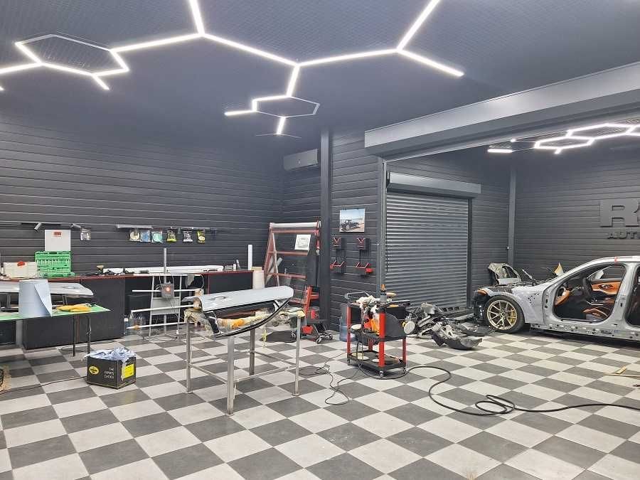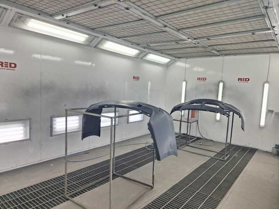 Основное помещение с подъемниками на 8-мь машин, а также две камеры по выполнению малярных работ, рихтовочных и сварочных работ.