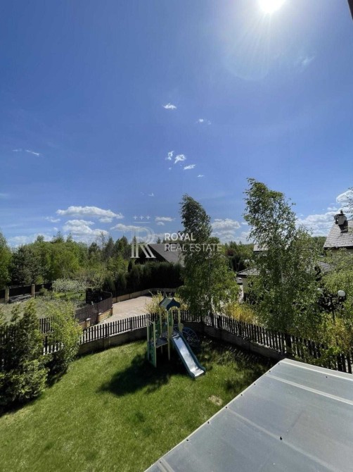 - 2-й поверх: - спальня 12 м2 з балконом; - спальня 13 м2; - дитяча спальня—ігрова 28 м2; - санвузол (ванна); - коридор та шафи-купе; - вихід на горище. Побутова техніка - об’ємний холодильник, пральна машина, посудомийна машина, винний холодильник, генератор льоду, кондиціонери та телевізори у всіх кімнатах.
