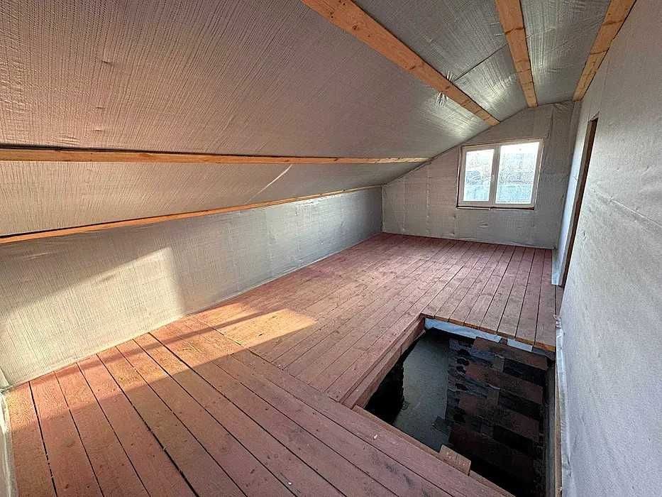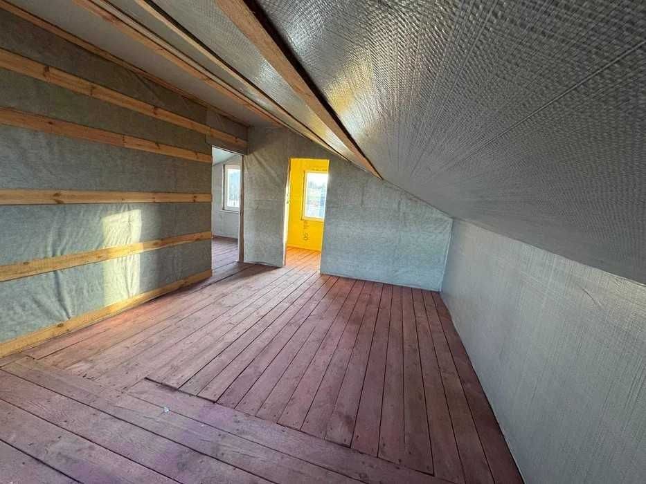 Перший поверх збудований зі зрубу та піноблоку, утеплений пінопластом. Другий поверх каркасно-щитового типу, утеплений кам’яною ватою зсередини та пінопластом зовні. Покрівля виконана з якісної металочерепиці та утеплена кам’яною ватою. Міжповерхове перекриття дерев’яне. На першому поверсі змонтована водяна тепла підлога.