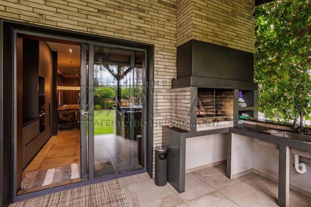 На території є відкрита тераса з мангалом та літньою кухнею. У теплу пору року готувати та влаштовувати зустрічі з друзями, милуючись садом і басейном, — одне задоволення! Після вечері на терасі можна легко переміститися до зони відпочинку з вогнищем, де приємно провести кінець вечора під потріскування полум’я, загорнувшись у пледи.