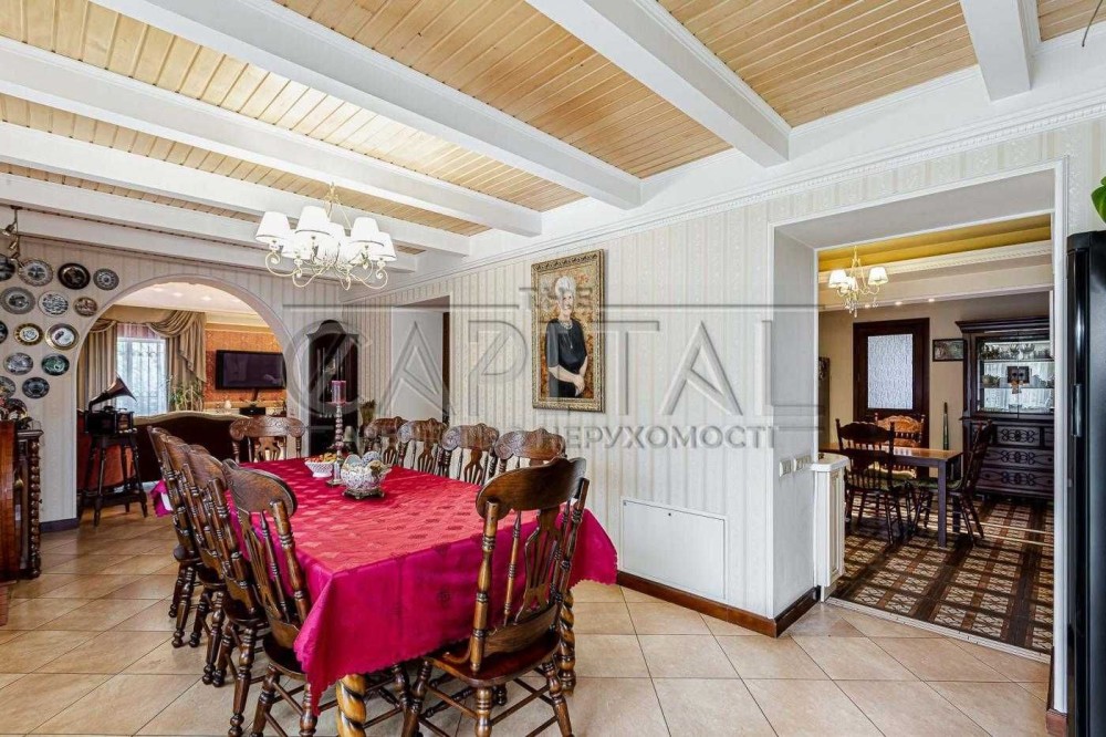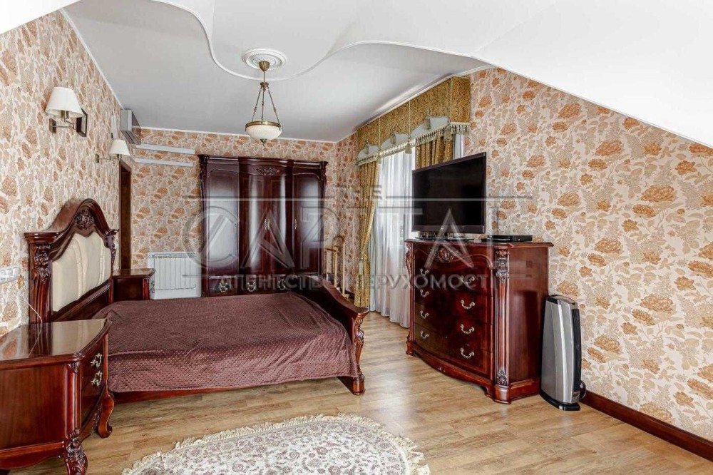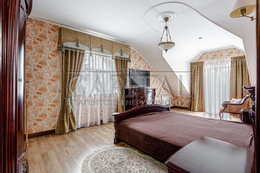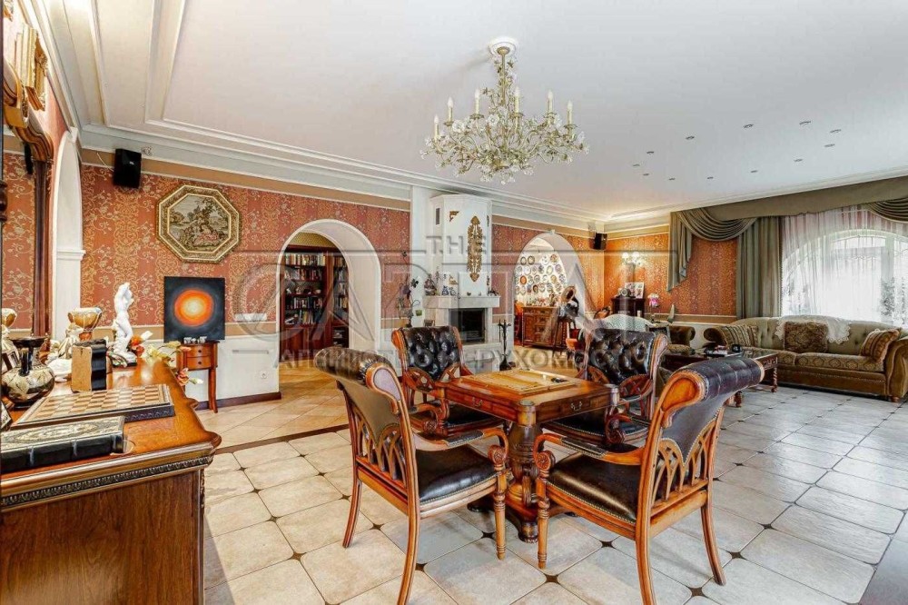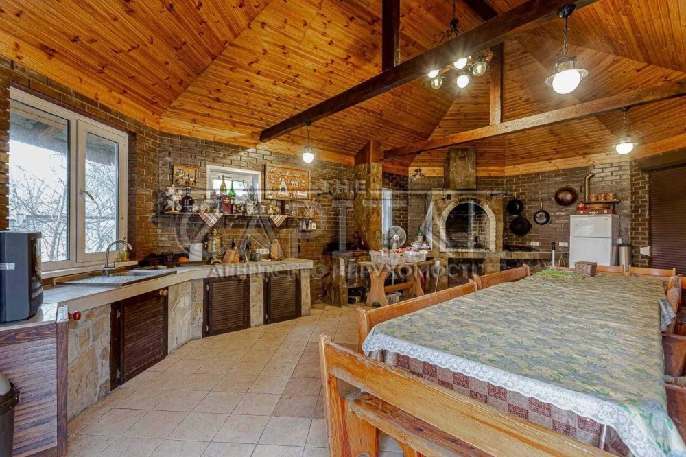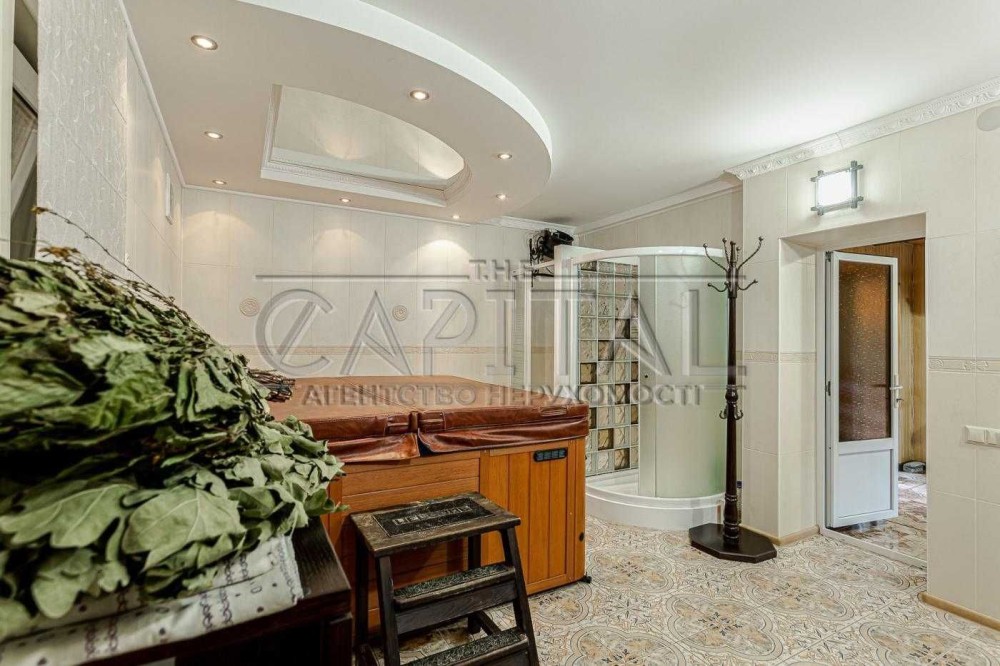 Маєток (700 м2) включає: будинок в 500 м2, гараж на 2 автомобілі, фінська сауна з гідромасажним басейном, альтанка з мангалом і зоною на 30 посадочних місць.