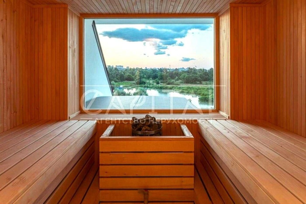 - САУНА з видовим вікном, окремий с/в, душ, передбанник з місцем для розміщення бігової доріжки.