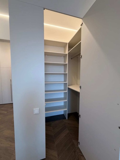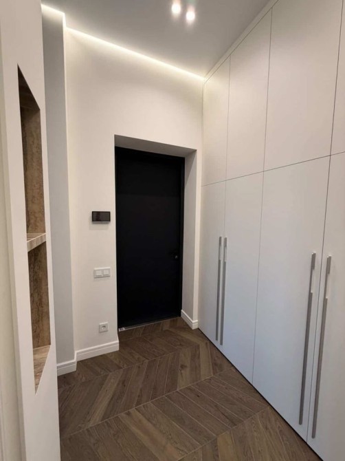 Квартира повністю укомплектована всією необхідною технікою та меблями для комфортного проживання. Пральна машина з сушкою вмонтована в шафу в коридорі. Передбачено багато місця для зберігання речей.