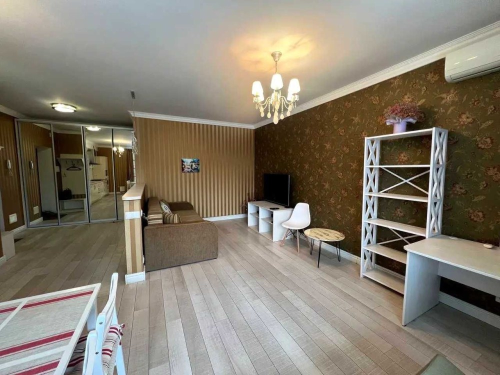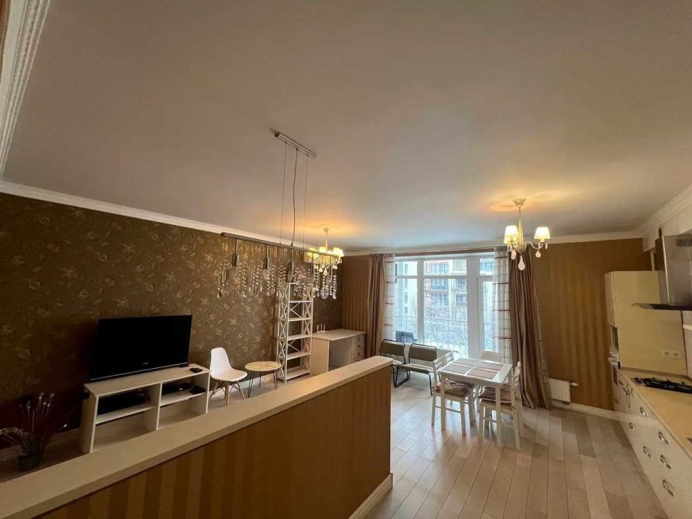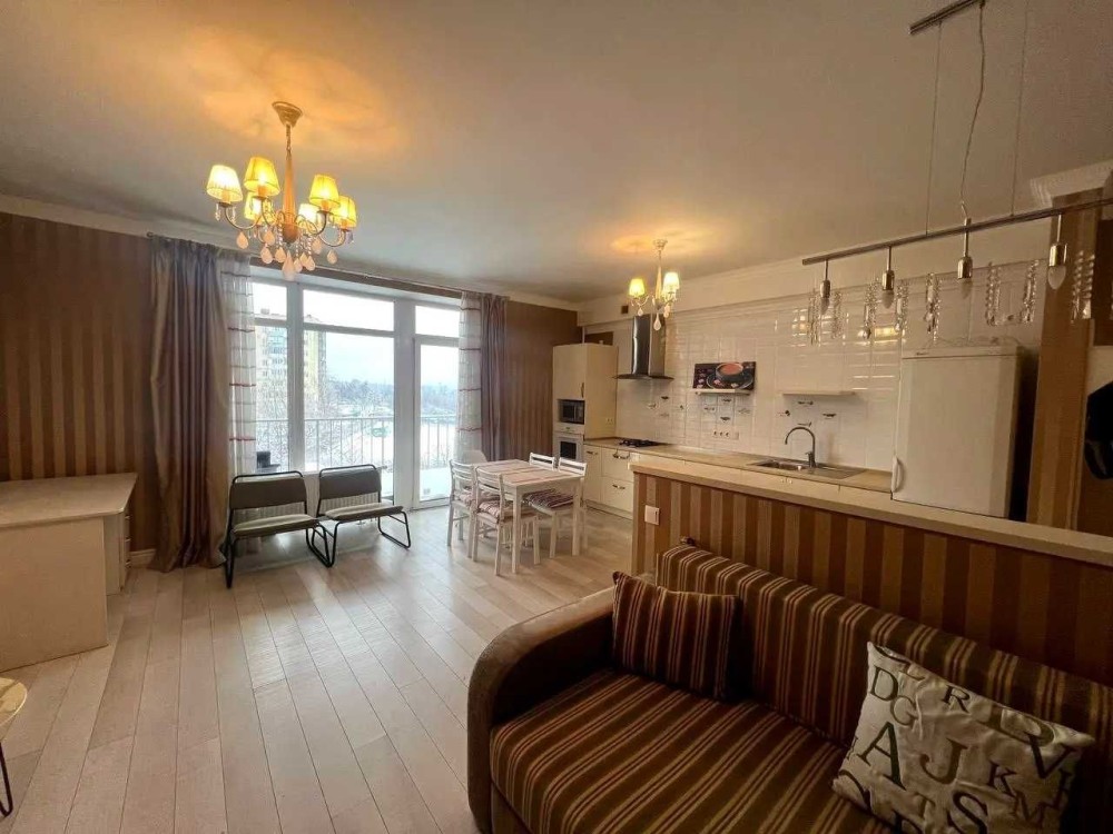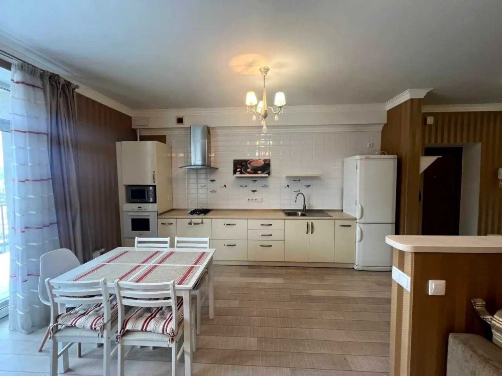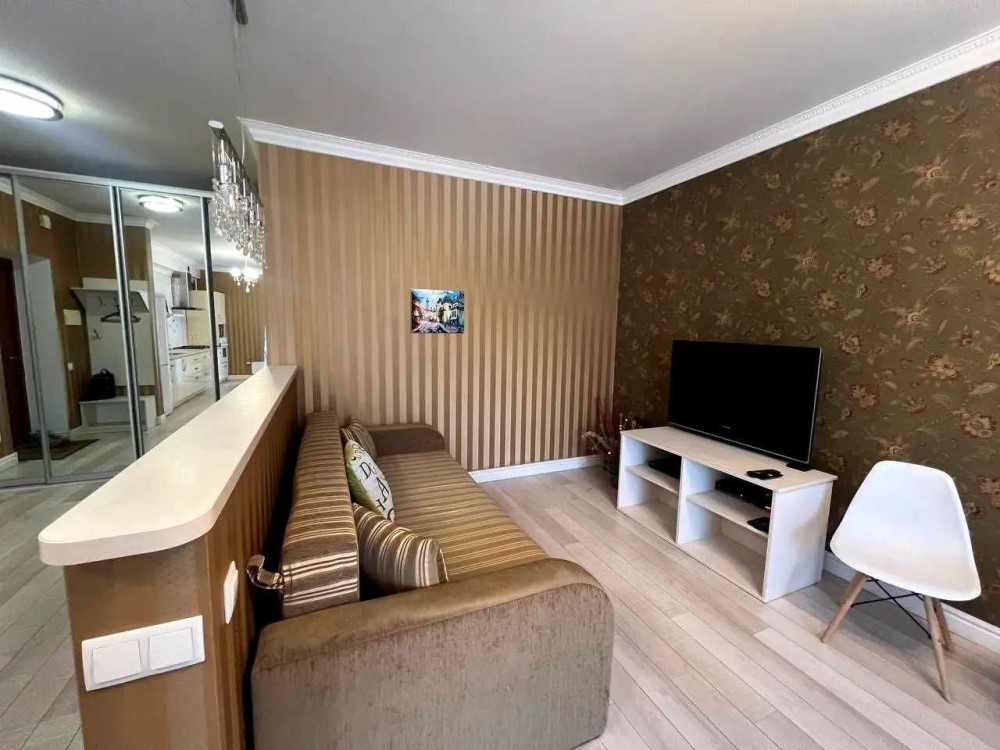 В квартирі зроблений якісний ремонт, кухня-студія, шафа-купе, вбудована кухня, газ, духова шафа, мікрохвильова піч, витяжка, 2-х камерний холодильник, телевізор 42 дюйма, кондіціонер (на тепло і на холод), пральна машина автомат, бойлер. Диван розкладний, на якому комфортно спати вдвох.
