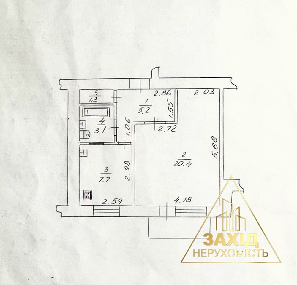 Заг. площа 38,6 кв.м