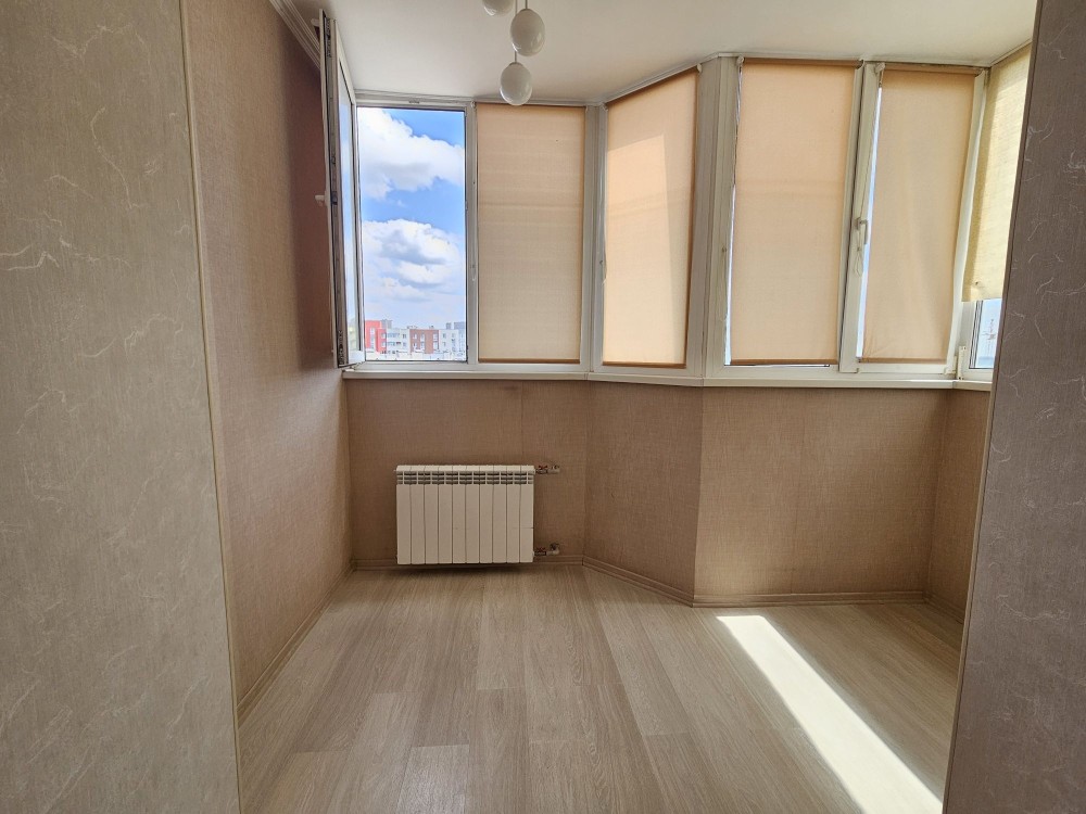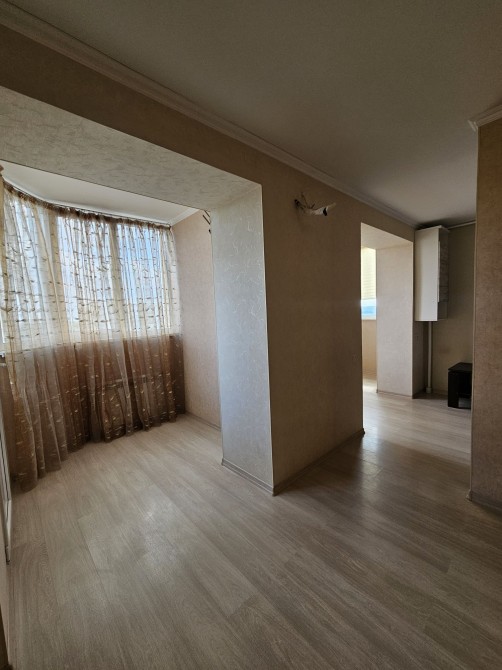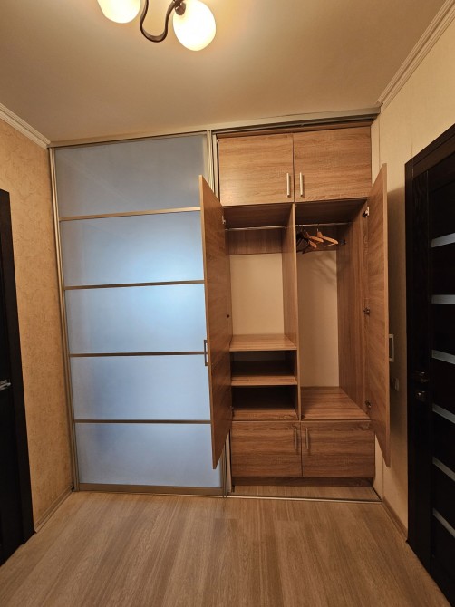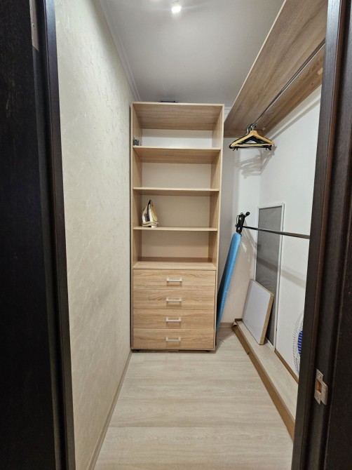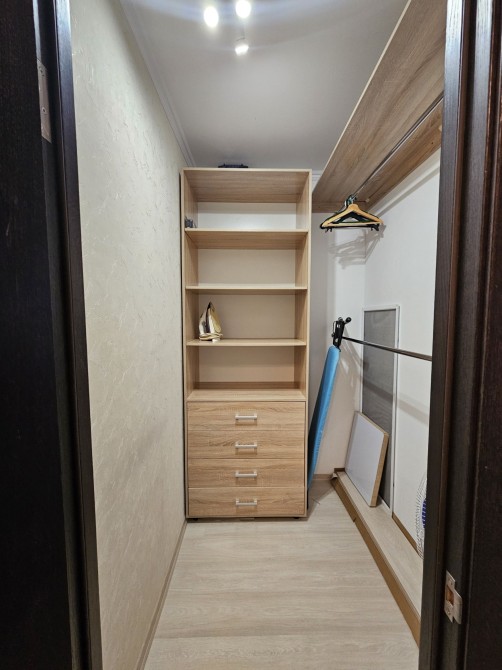 Кухня з кімнатою відокремлені, санвузол об'єднаний. Є гардеробна і додаткова шафа, а також балкон.