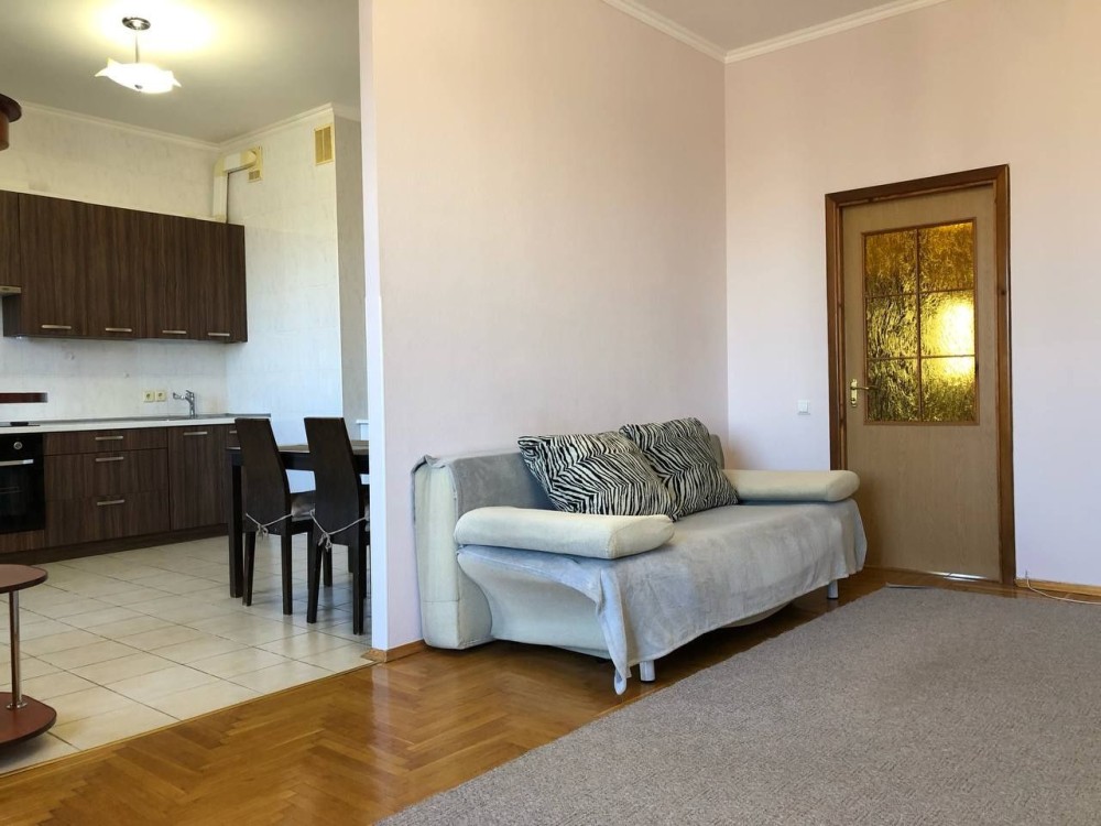 Тепла світла простора 2-кімнатна квартира на вул. Тетянинська (Леваневського), 6, Солом'янський район. Загальна площа 94 кв.м., велика кухня-вітальня, окрема спальня, роздільний санвузол, великий хол, 2 балкони, 7 поверх 18-поверхового будинку.