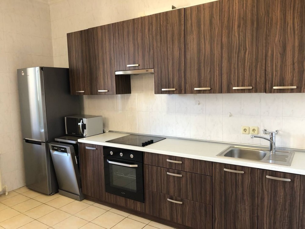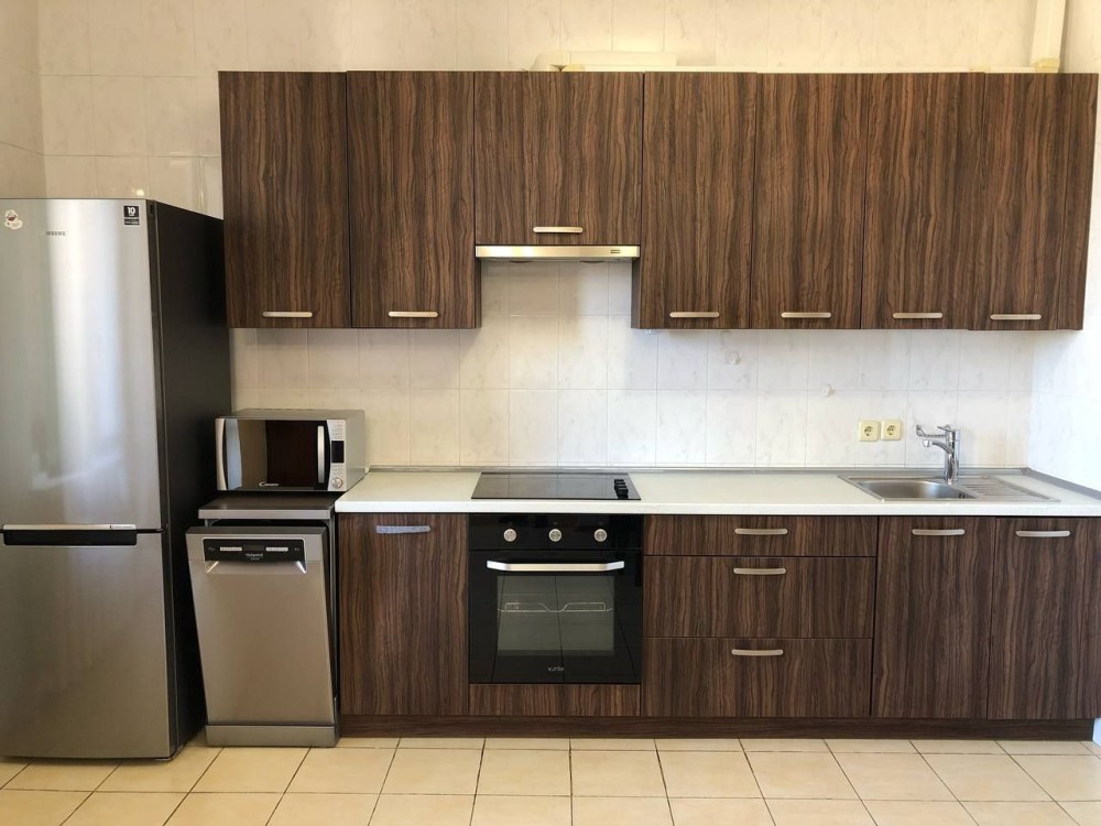 Квартира повністю мебльована (вбудована кухня, кухонний стіл, кухонні стільці, двоспальне ліжко з хорошим ортопедичним матрацом, тумбочки біля ліжка, розкладний диван, велика шафа-купе в холі, шафа в спальні, комод, робочий стіл, робочий стілець) та укомплектована технікою (холодильник, нова посудомийна машина, нова пральна машина-автомат, духовка, варильна поверхня, плазмовий телевізор, мікрохвильова піч, електрочайник, бойлер, праска, пилосос).