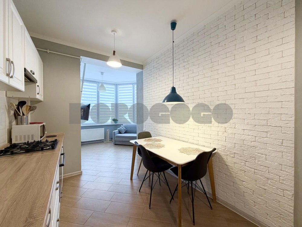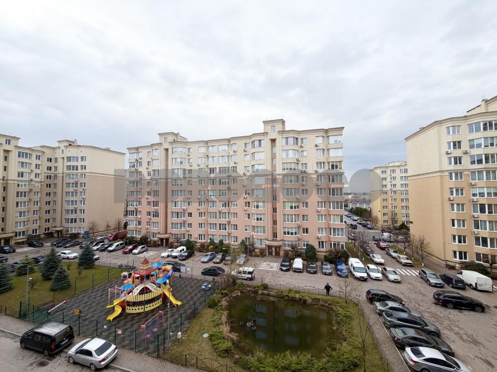 Квартира двостороння, з вдалим плануванням. З кухні та спальні відкривається приємний вид на декоративне озеро.