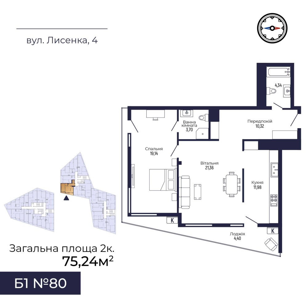 • Общая площадь 75.24 м2