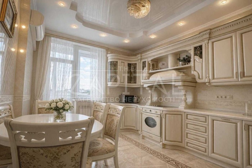 Простора кухня із великим обіднім столом (усюди натуральне дерево і мармурова поверхня) 15,5 кв.м. Є підігрів підлоги.