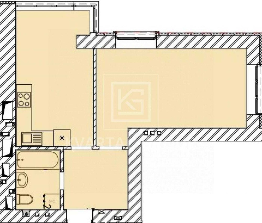 • Общая площадь 45 м2