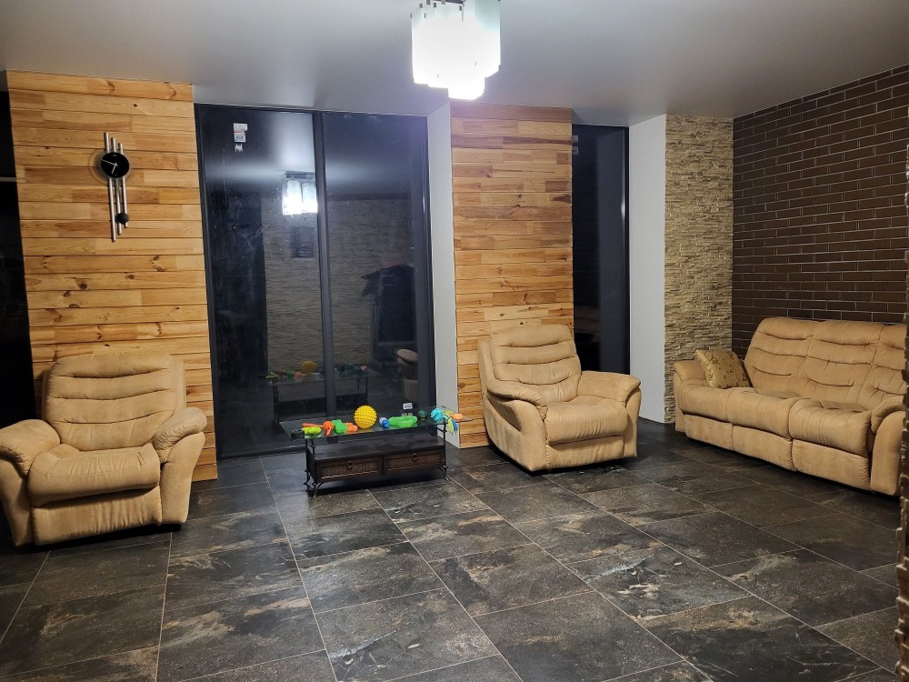 Двухповерховий будинок 2023 року розташований біля лісу. З панорамних вікон будинку відкривється мальовничий краєвид, а перебування в будинку з весни до осені супроводжує спів птахів.