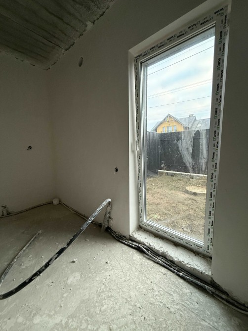 В будинку вже зроблена чистова гипсова штукатурка, водяна тепла підлога та чистова стяжка, розведена електрика.