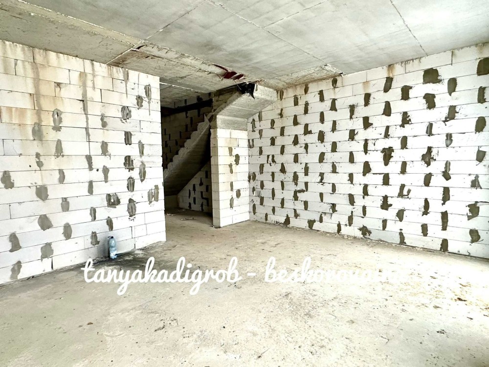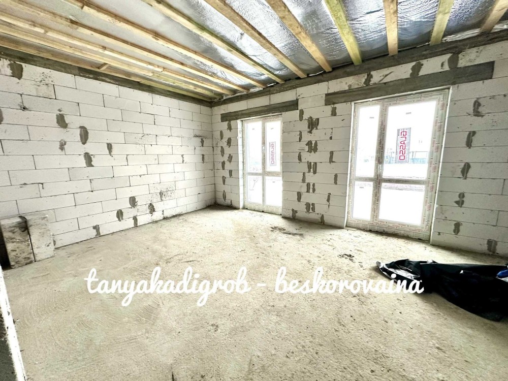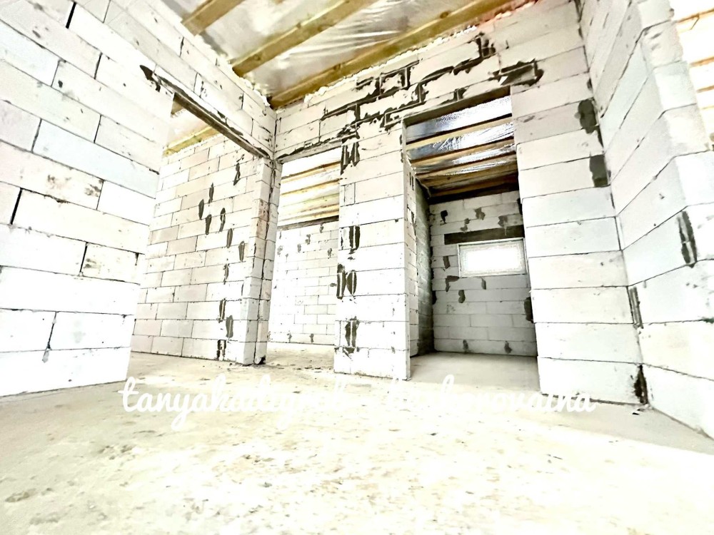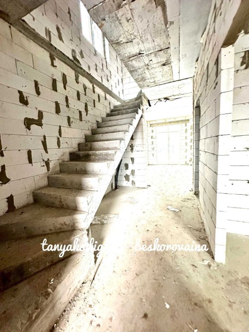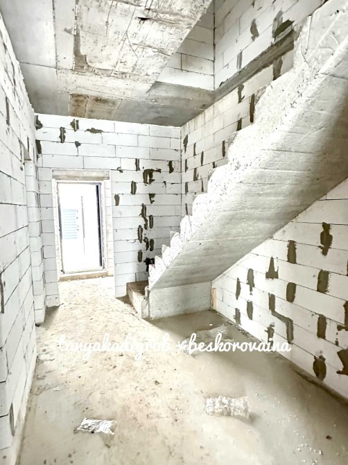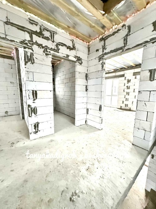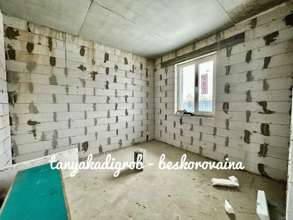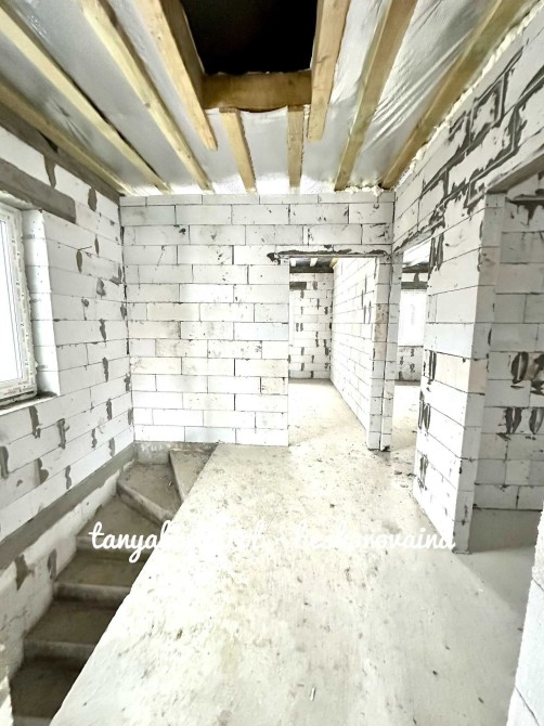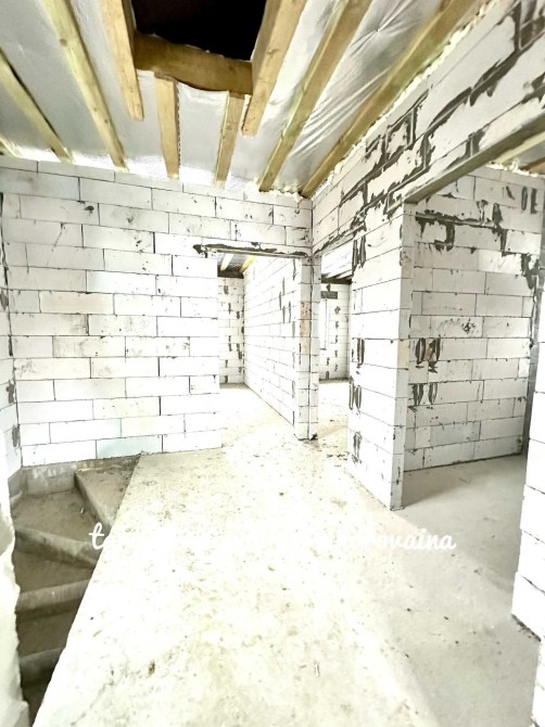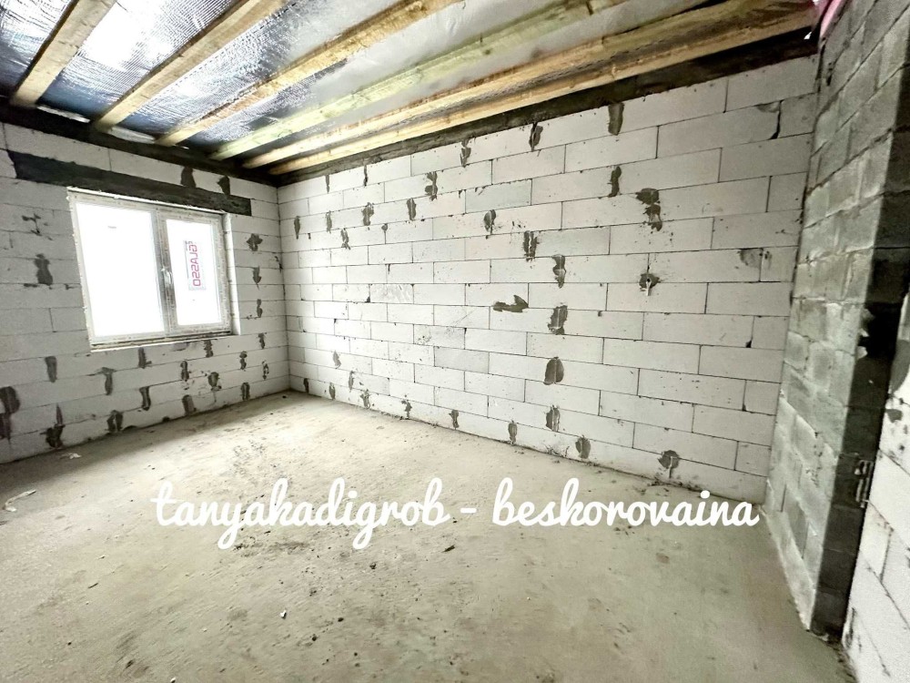 Будинок зведений на стрічковому фундаменті з газоблоку, якісно утеплений пінопластом та мінеральною ватою, що забезпечує енергоефективність і комфорт протягом усього року.