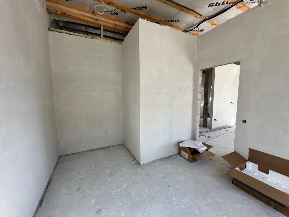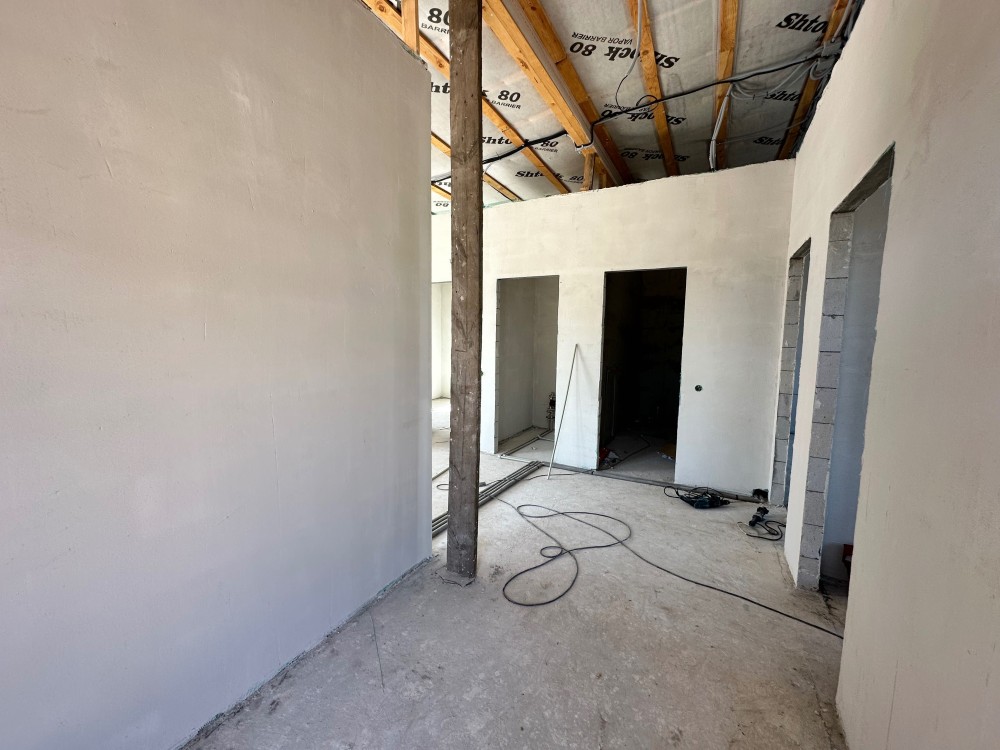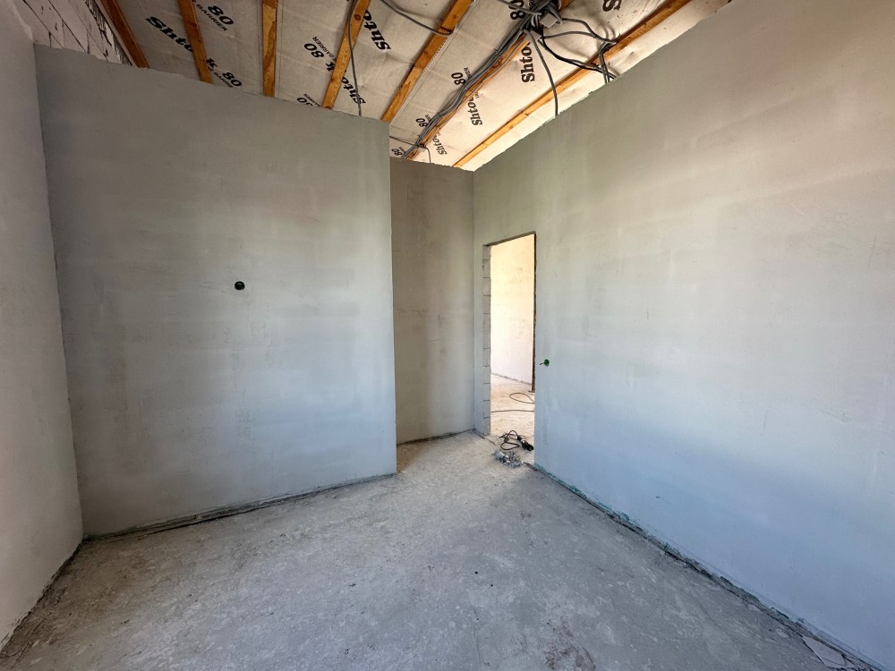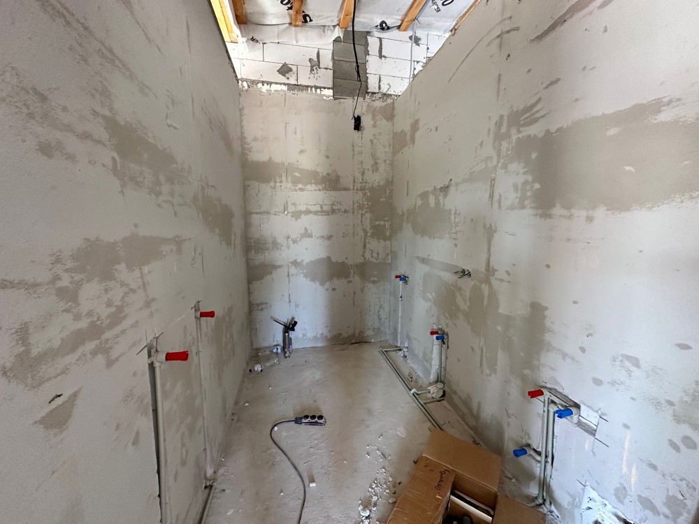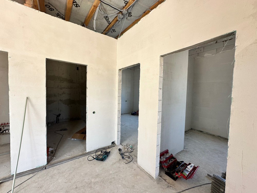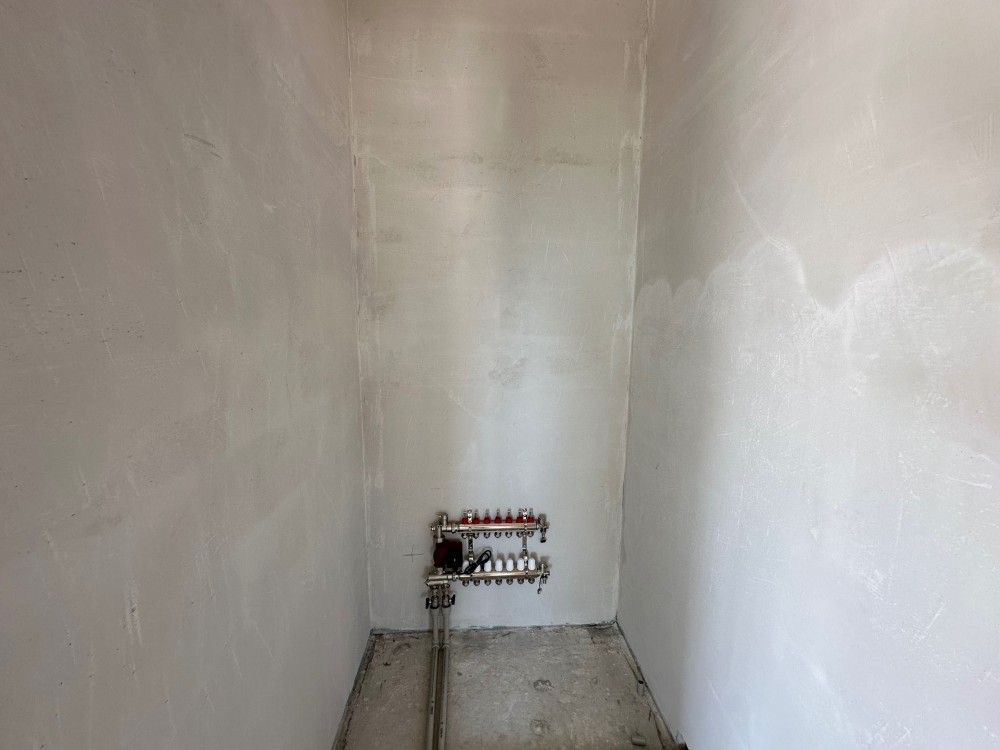 - Готовність до проживання: Встановлено газовий котел, розведено електрику та сантехніку, облаштовано теплу підлогу, виконано гіпсову штукатурку стін та стяжку підлоги.