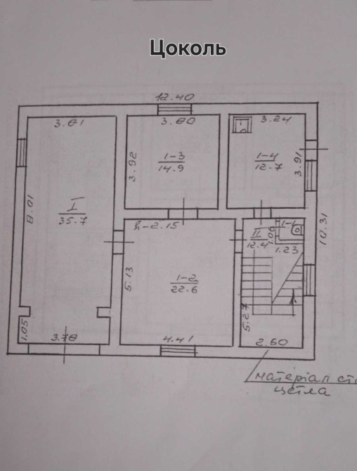 Будинок цегляний, утеплений мінеральною ватою, перекриття між поверхами — залізобетонні плити. Дах покритий металочерепицею. Всі вікна — металопластикові.