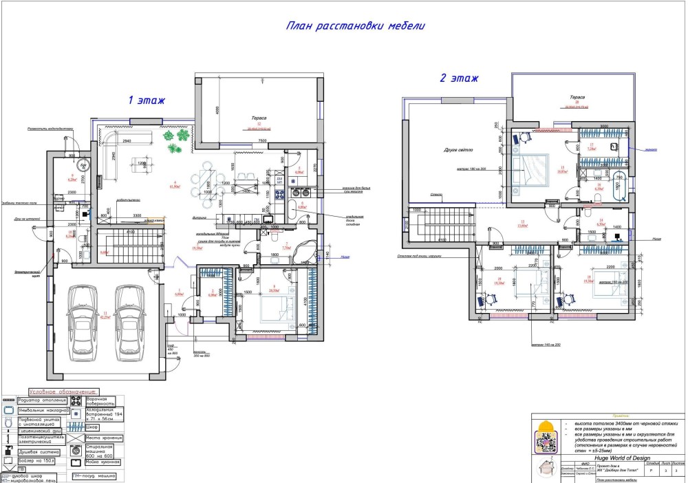 гараж на 2 авто с входом в дом, котельная комната и ТЕРРАСА 30 м2