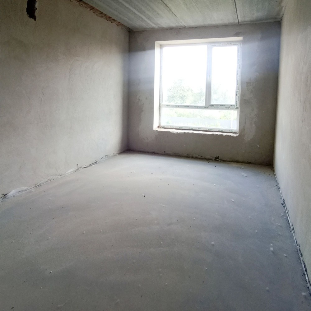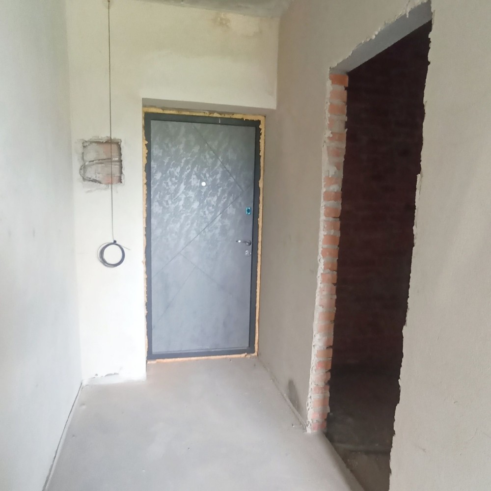 В квартирі вже є штукатурка та лазерна стяжка, комунікації підведені до дверей, будинок зданий в експлуатацію