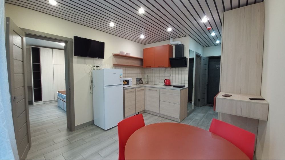 Новий 2-х поверховий клубний будинок (дуже теплий за рахунок утеплення) закрита територія, відеоспостереження, паркувальні місця для мешканців. Упорядкована територія, альтанка мангал. Студія з окремою спальнею. Уся необхідна техніка і посуд для приготування і прийому їжі.